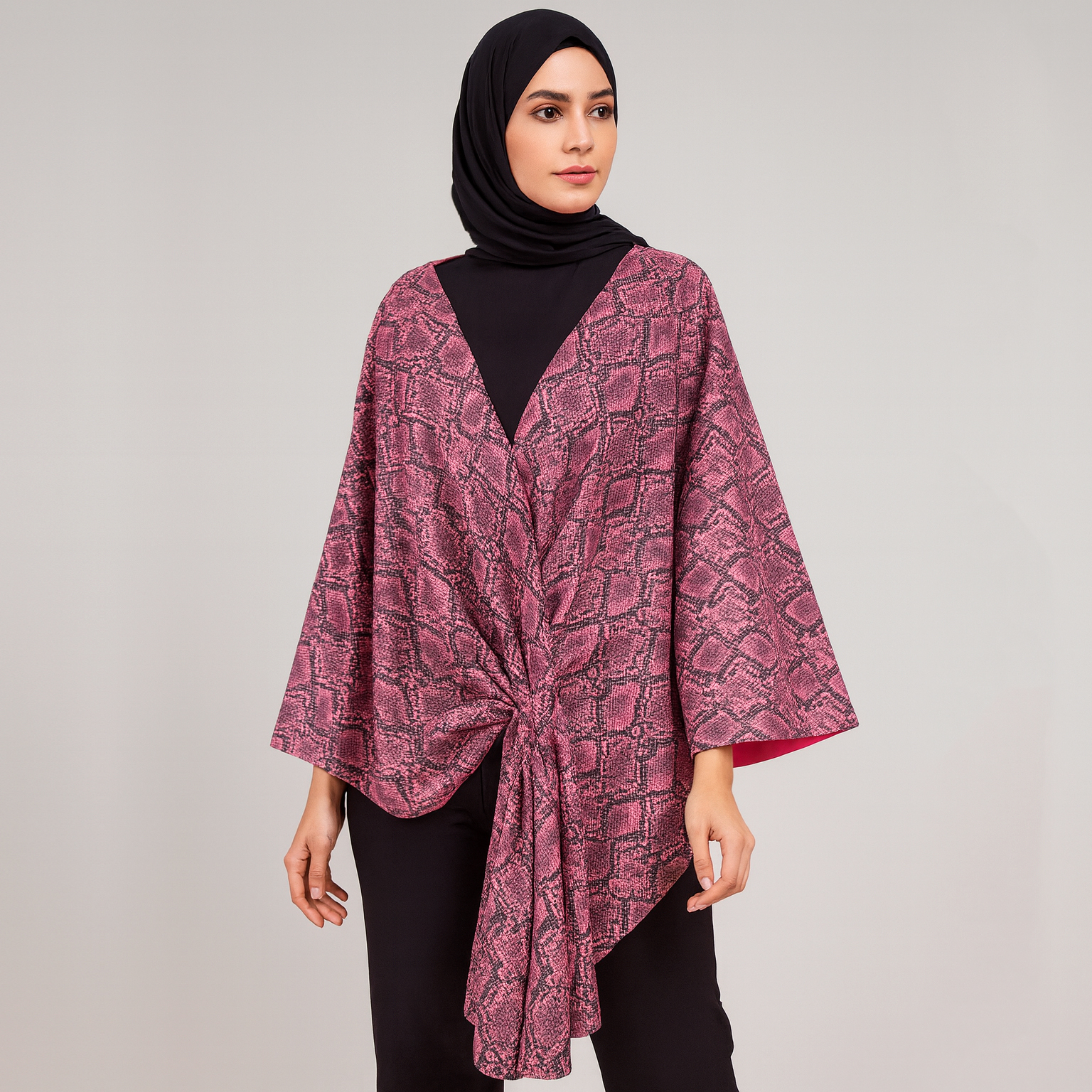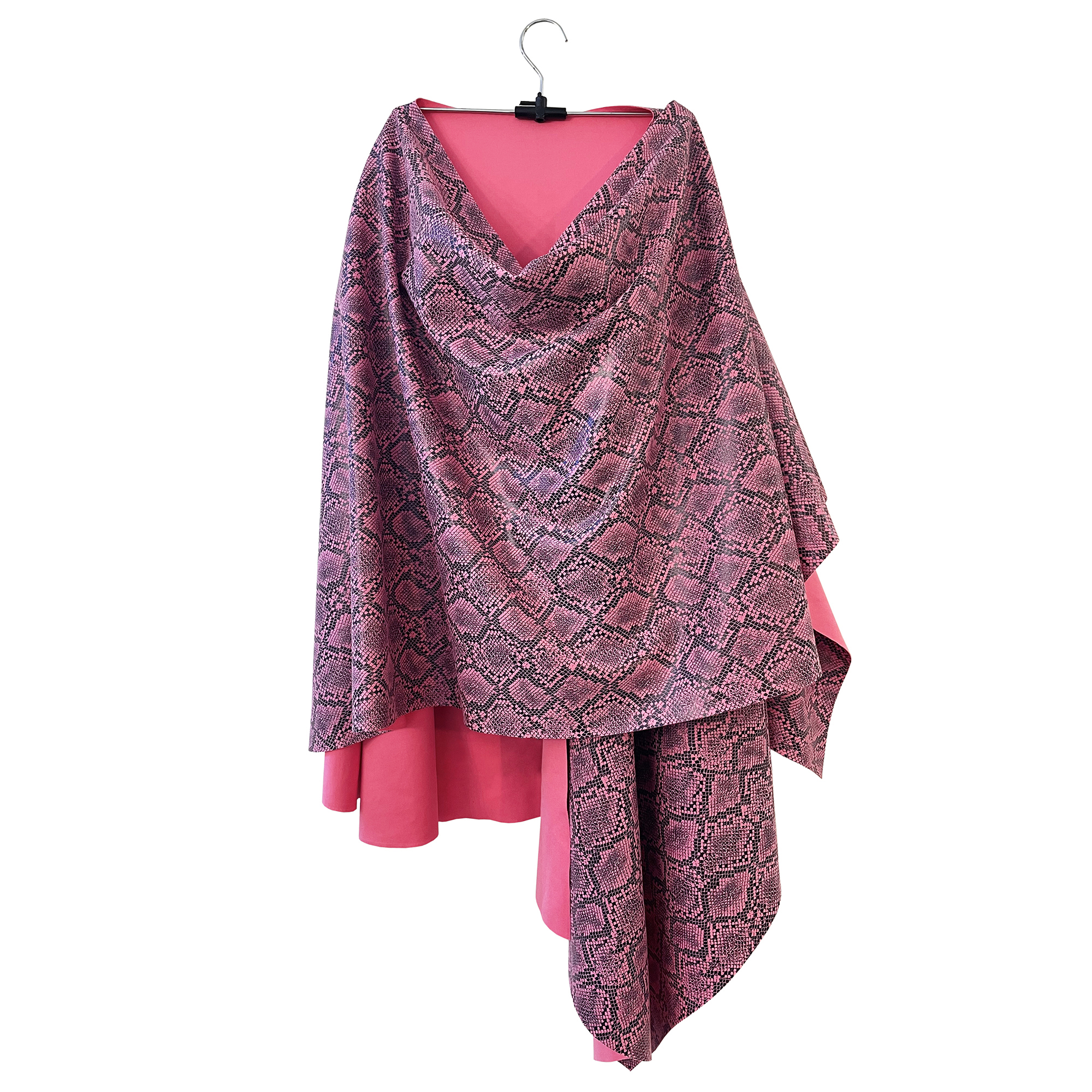 رویه لباس طرح پوست ماری براق شبیه چرمینه میباشد قد کار برای هر سایزی متفاوت است و سمت راست قابل تنظیم است یک طرف کوتاه تر قرار میگیرد با توجه به لباسی که زیر کار استفاده میشود مناسب هر فصلی میباشد کار سایزبندی نداشته و از 32 تا 48 هم قابل استفاده است