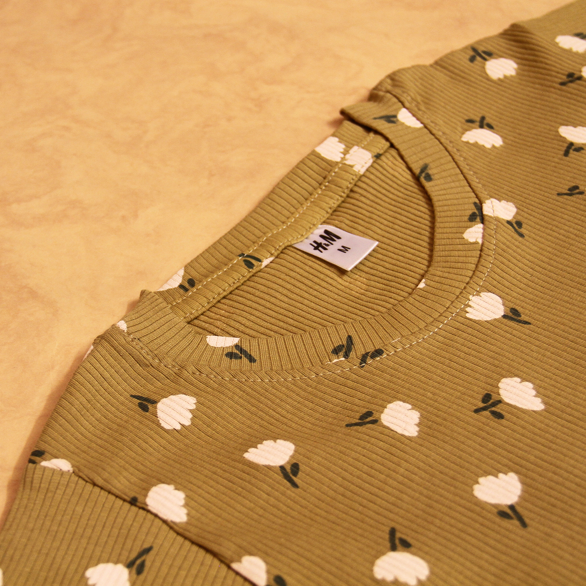 کراپ تی‌شرت آستین کوتاه زنانه گلدار KE24
